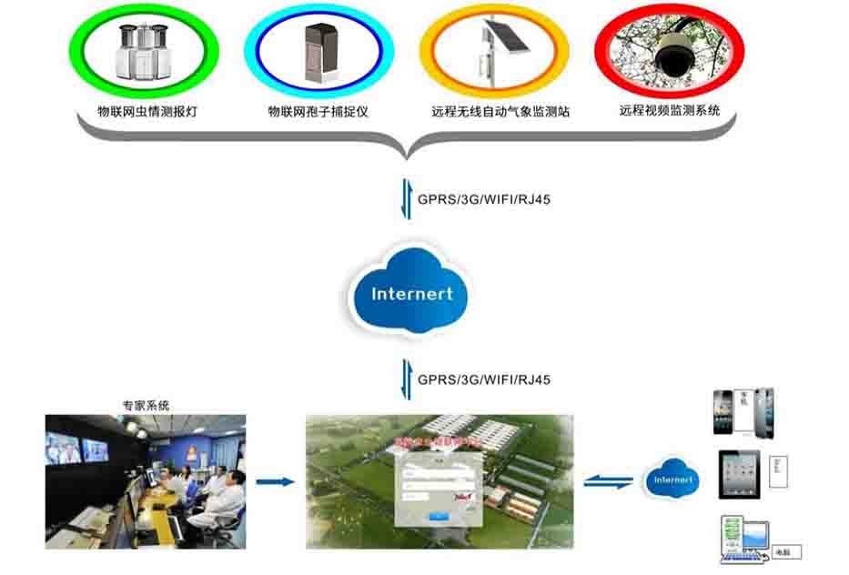系統可(kě)自(zì)動完成蟲情信息、病菌孢子(zǐ)、氣象信息的(de)圖像及數據采集,通過遠程無線傳輸,自(zì)動上傳至雲服務器,實時存儲及顯示蟲情、病菌孢子(zǐ)圖像,并通過圖像信息庫及技術分析功能,分析病蟲害數量變化,預測病蟲害的(de)發生時間和(hé)趨勢。用戶可(kě)通過雲平台或手機APP實時查看數據,遠程管理(lǐ)設備。達到自(zì)治區、州、縣、鄉各級信息采集站無線傳輸、遠程控制,信息數據共享,從而提高(gāo)相關部門的(de)病蟲害監測防控能力。