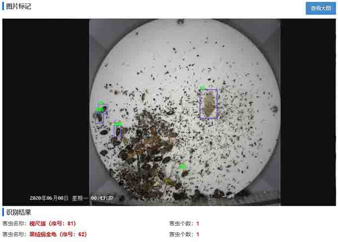 病蟲害監測預警系統通過雲端的(de)人工智能引擎可(kě)對害蟲蟲體進行自(zì)動标記和(hé)識别,對害蟲進行分類計數。通過利用人工智能技術,系統可(kě)識别柳藍葉甲、褛裳夜蛾、灰胸突鰓金龜、金星尺蛾、美苔蛾等害蟲,識别種類多達100多種,識别準确率高(gāo)于85%,大幅提升識别率。通過遠程監測,用戶可(kě)以在線準确掌握林業病蟲害發生情況,針對具體蟲害類型采取防治措施。